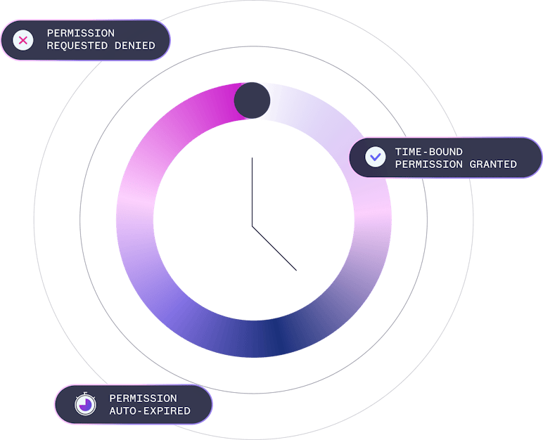 Privilege is created at request time using native cloud APIs, without sitting in the data path, and removed automatically when the task ends. Nothing exists before the request, and nothing remains after.